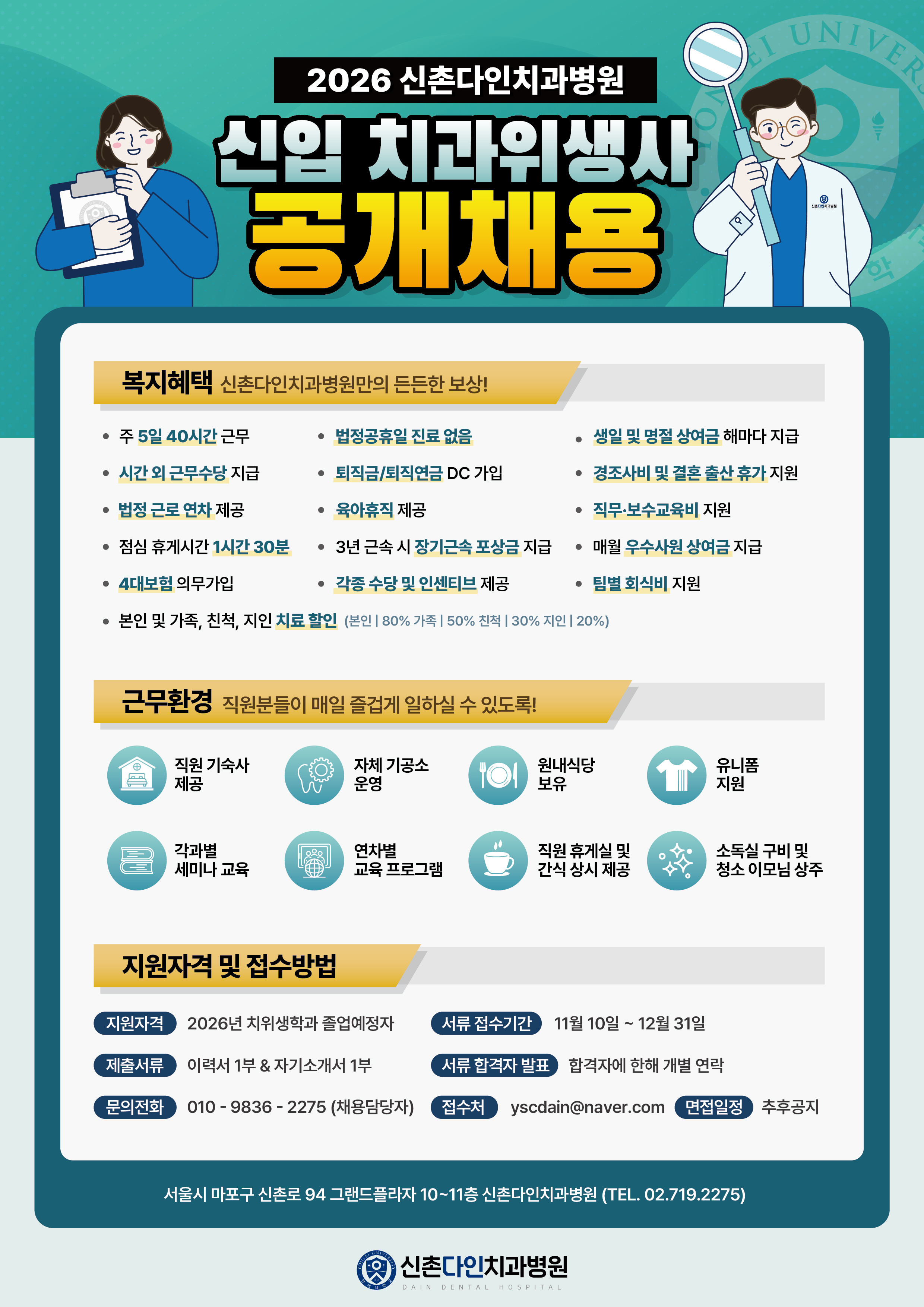 2026년 신촌다인치과병원 신규치과위생사 채용