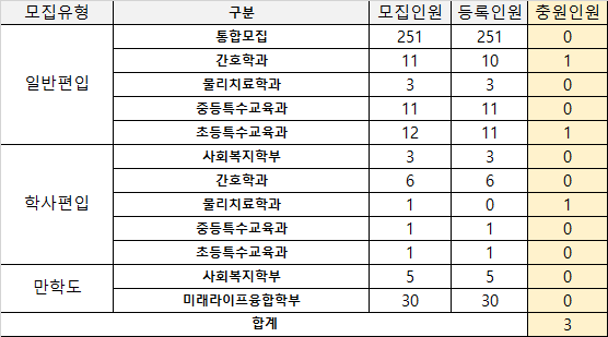 * 해당학과 : 간호학과, 물리치료학과, 초등특수교육과, 중등특수교육과